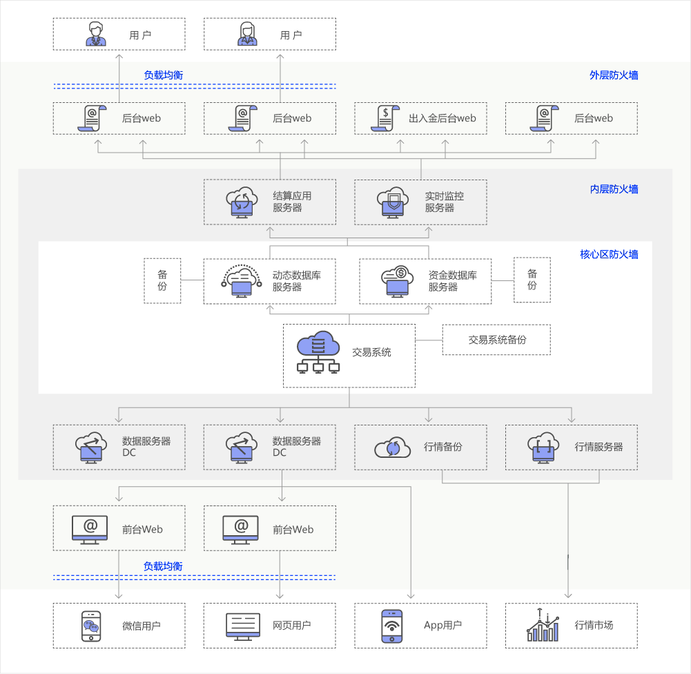 我们专用的金融云计算服务以及专线网络,与最好的机房和网络服务商合作,与世界高效互联,以应对金融交易领域高稳定、低延迟的访问需求。同时,提供灵活、安全、低成本的一站式服务,并做到主、备服务器三级灾备,实现系统“0”中断