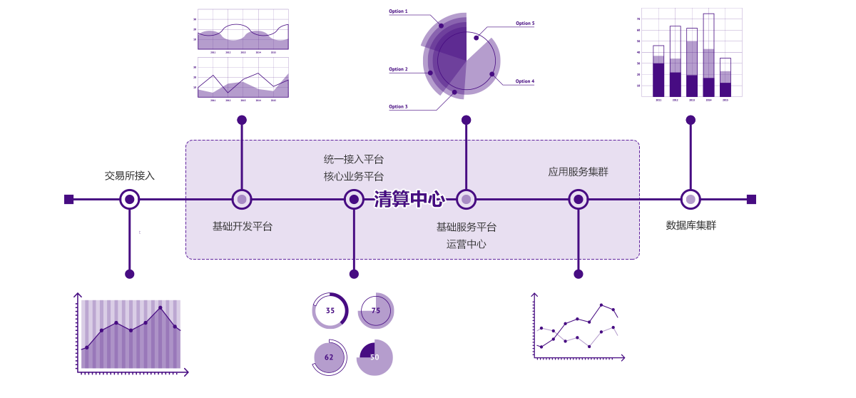 清算解决方案(Clearing Solution),为经纪商(交易所)的交易平台生态圈中各个机构、代理、客户进行合理、科学的账目清算,实现各方权益公平分配。